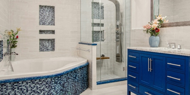 In your bathroom, consider adding a statement wall behind the vanity for a dramatic effect. Or inside the shower niche with 3D tile surfaces.